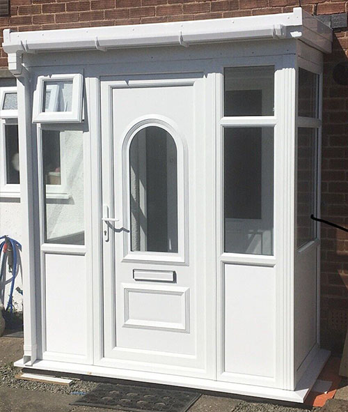 We offer a range of standard size porches offered in a variety of styles also options to personalise with a range of door colours and door panel options.
